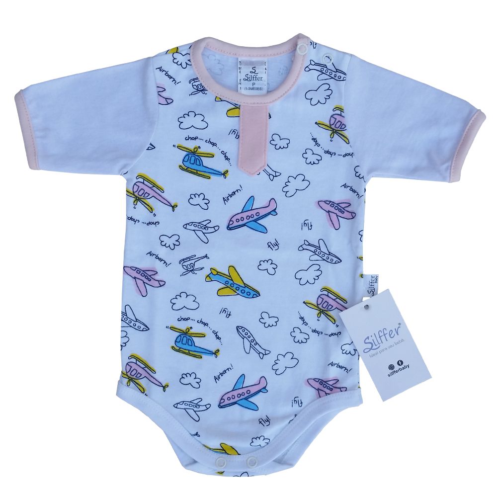O Body Bebê Menina Manga Curta Estampa - Aviãozinho da Silffer, conta com uma linda estampa além do conforto característico dos produtos Silffer