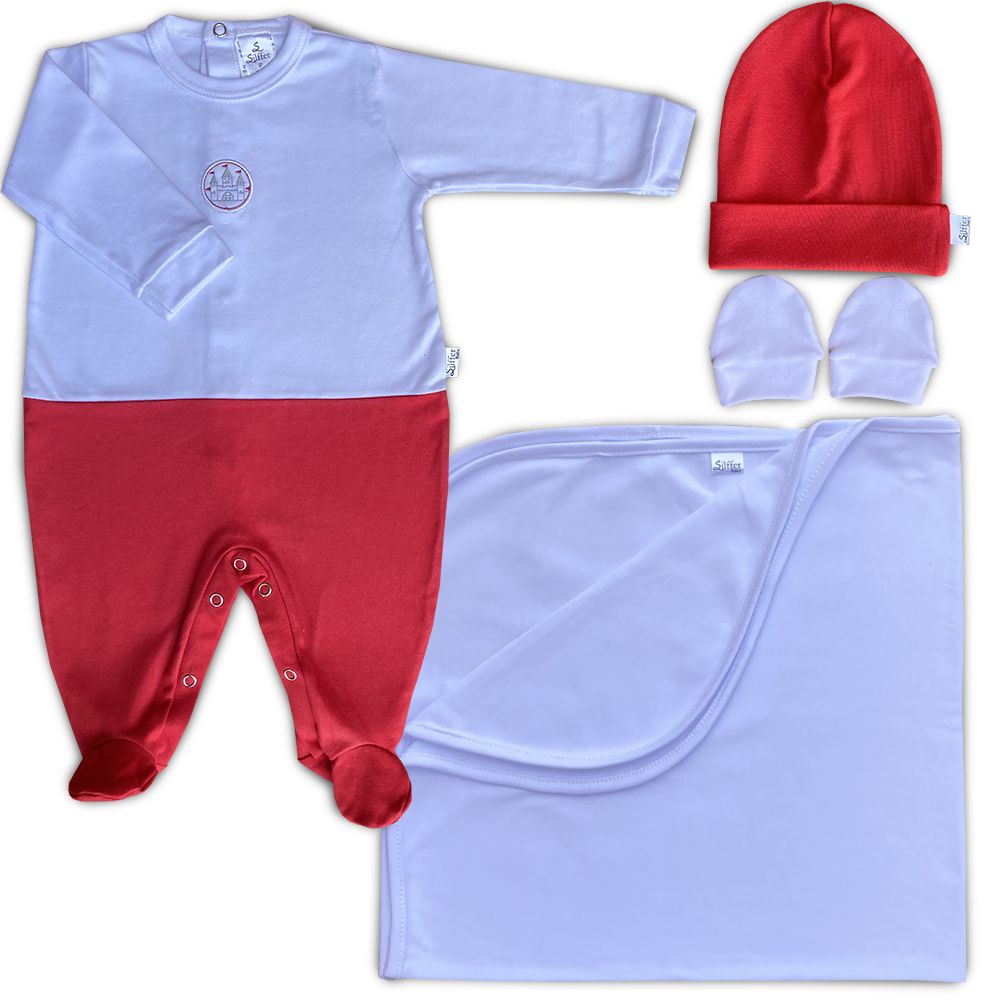 A Saída Maternidade 04 Peças Branco e Vermelho Bordado-Castelo da Silffer, contém a mais alta qualidade de costura, além de proporcionar o máximo conforto, pois utilizada malha egípcia suedine, a melhor malha do mercado relacionado a bebês.