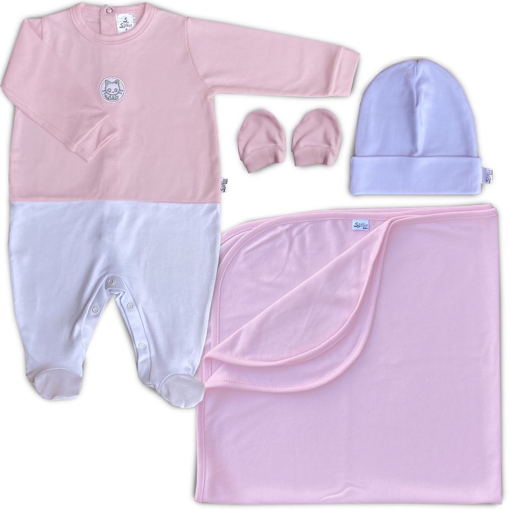 A Saída Maternidade 04 Peças Rosa Bebê e Branco Bordado-Gata da Silffer, contém a mais alta qualidade de costura, além de proporcionar o máximo conforto, pois utilizada malha egípcia suedine, a melhor malha do mercado relacionado a bebês.